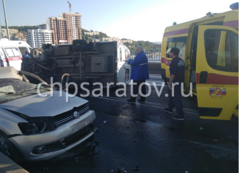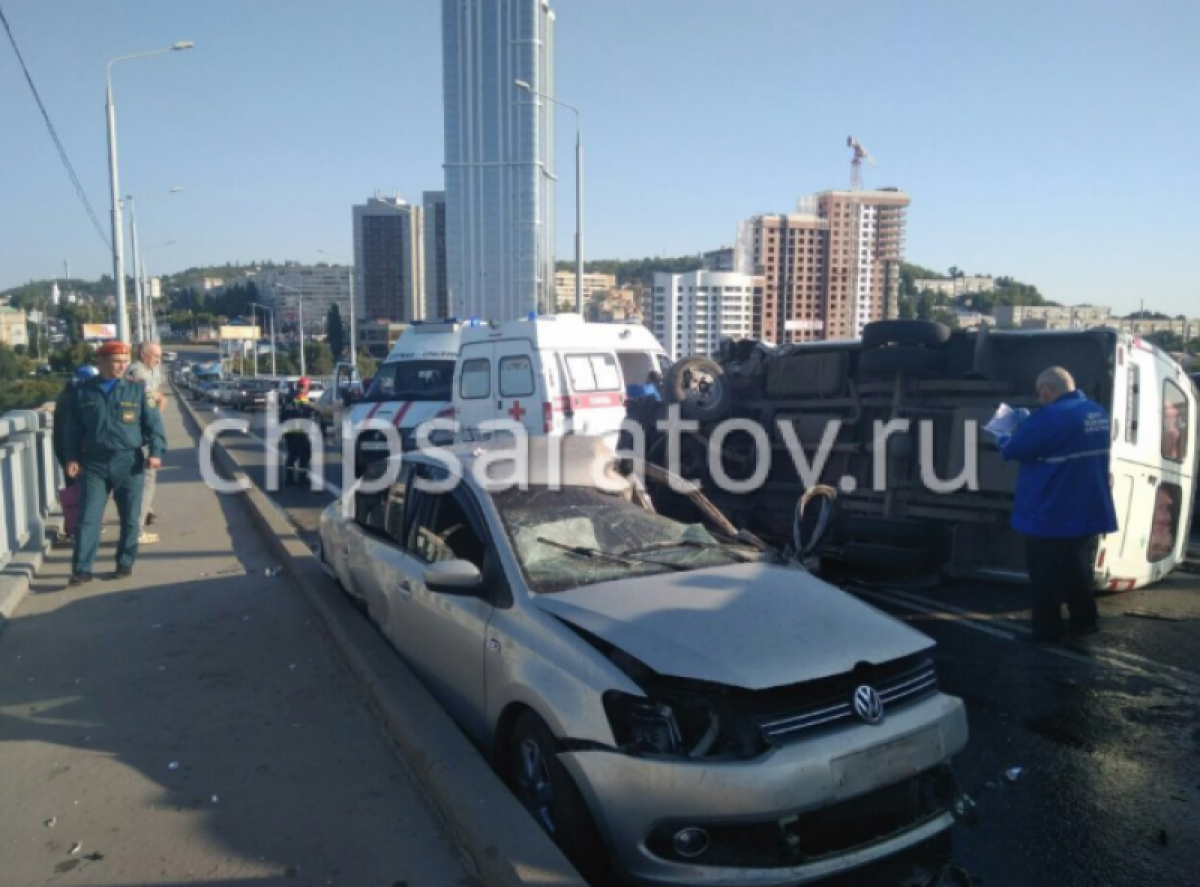 На мосту Саратов — Энгельс произошло столкновение легкового автомобиля и пассажирской газели, в которой находились рабочие Энгельсстроя.