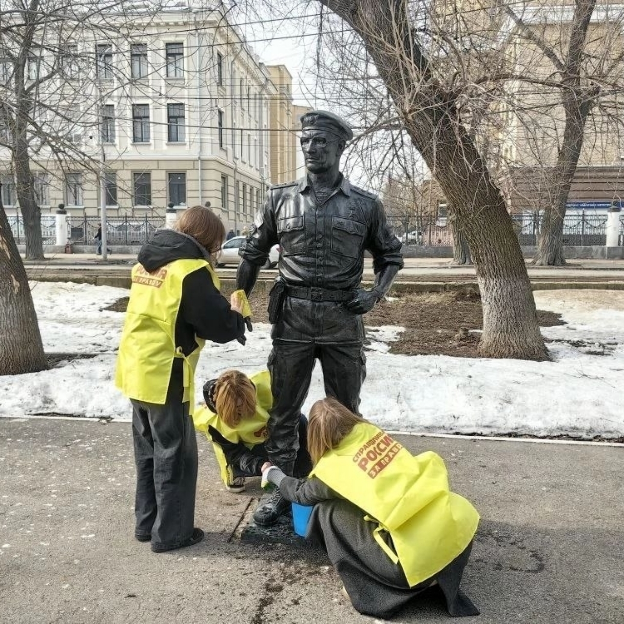В канун Дня Росгвардии активисты Молодёжи СПРАВЕДЛИВОЙ РОССИИ провели субботник у скульптурного изображения Герою России, генерал-полковнику Анатолию Александровичу Романову.