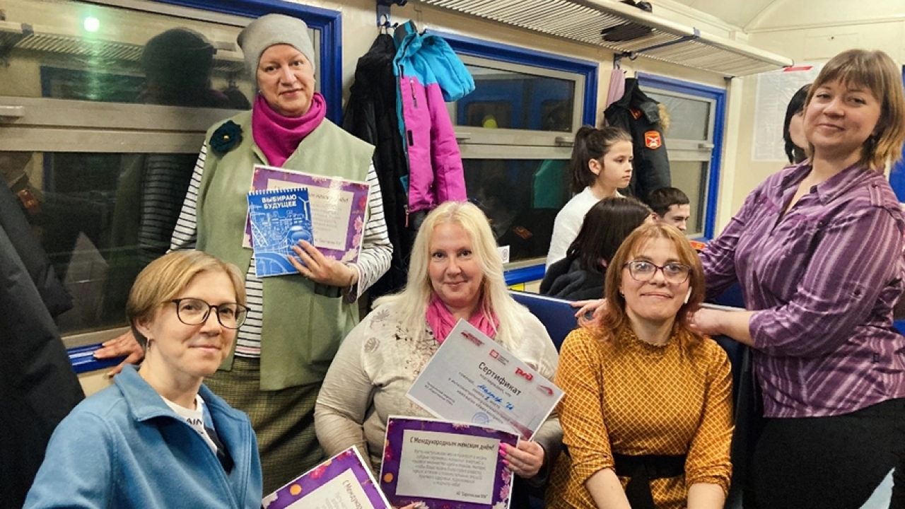 Завтра в пригородном поезде №6005 Саратов – Тарханы состоится тематическая квиз-игра «Мама тоже может», приуроченная к Международному женскому дню.