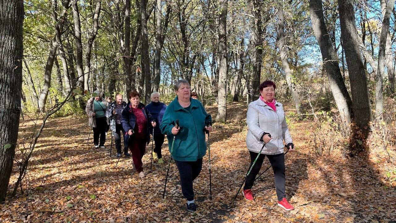 Участники клуба «Формула здоровья», пенсионеры из Лысогорского района Саратовской области провели тренировку по скандинавской ходьбе в лесу. Об этом сообщает минтруда и соцзащиты региона.
