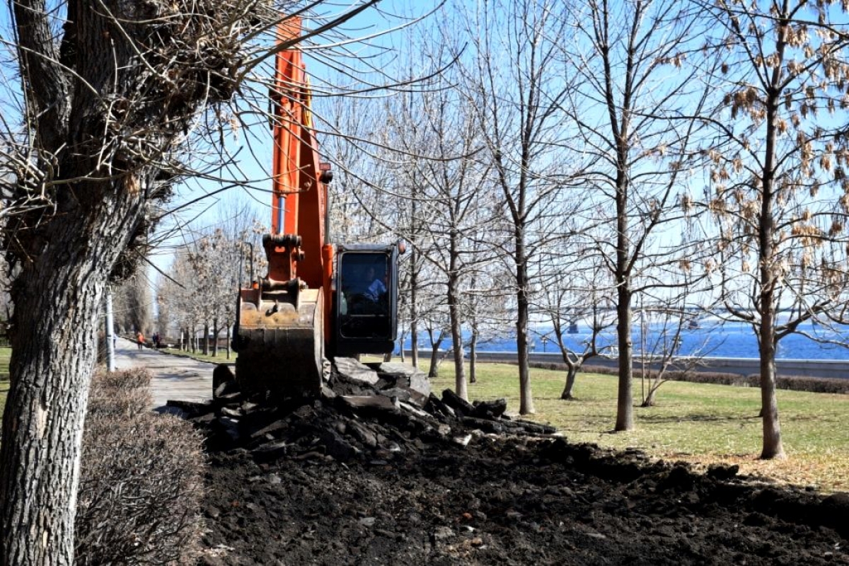 Сегодня на участке «старой» набережной в Саратове начались работы по снятию старого покрытия с дорожек 3-го и 2-го ярусов.
