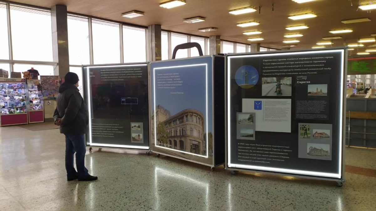 Мобильная выставка представлена в виде раскрытого чемодана, который является главным атрибутом путешествий. На интерактивном дисплее размещена карта Саратовской области. Специально подобранные фотографии знакомят посетителей с историей и достопримечательностями Саратова, а также людьми, прославившими этот город.