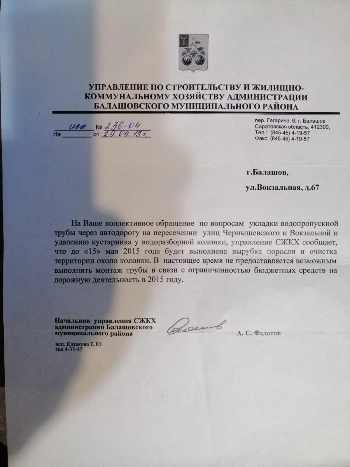 Надеемся на оперативный и обнадеживающий ответ от властей г. Балашова.