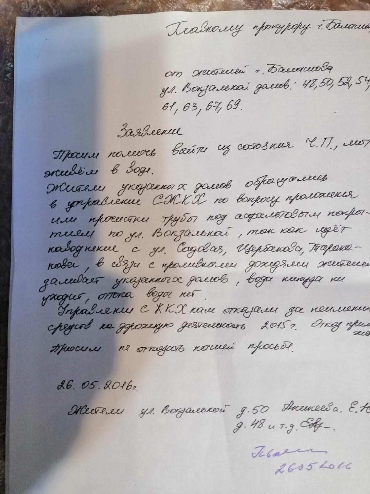 Писали они и прокурору г. Балашова. Вот цитата из этого письма: «Дожди, весенние паводки затопляют улицу. Дети по этой улице ходят в школу № 18. Там можно не ходить, а плавать».