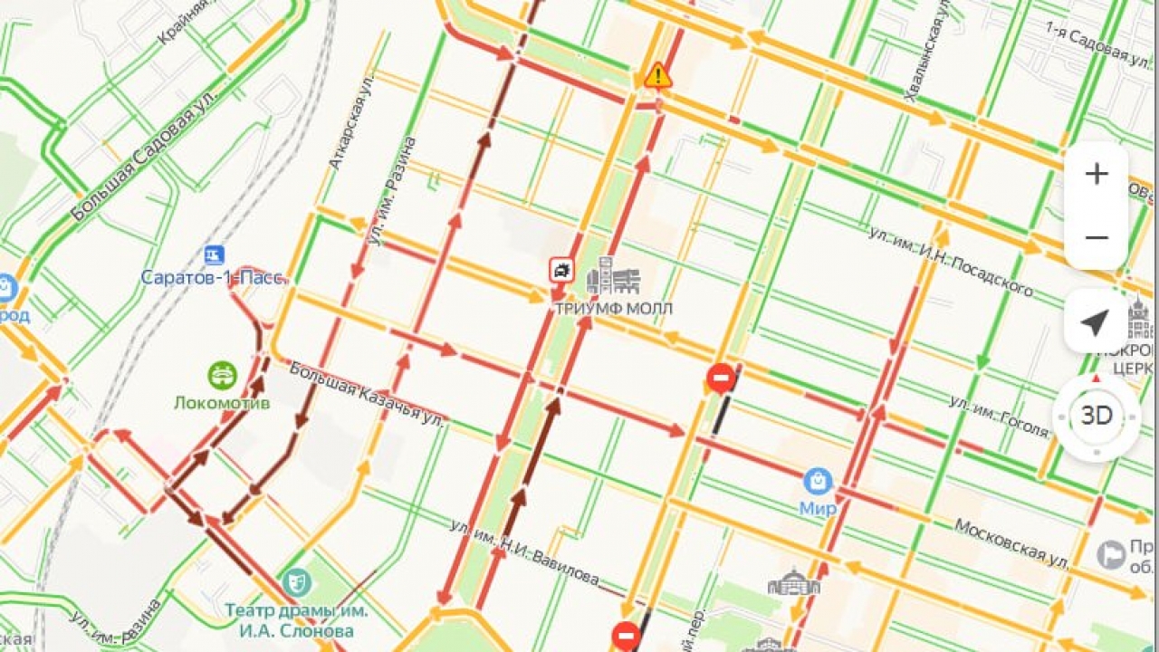 Традиционно пятничный вечер становится испытанием для саратовских автолюбителей. Сервис «Яндекс.Пробки» фиксирует 9-балльные пробки на улицах города.
