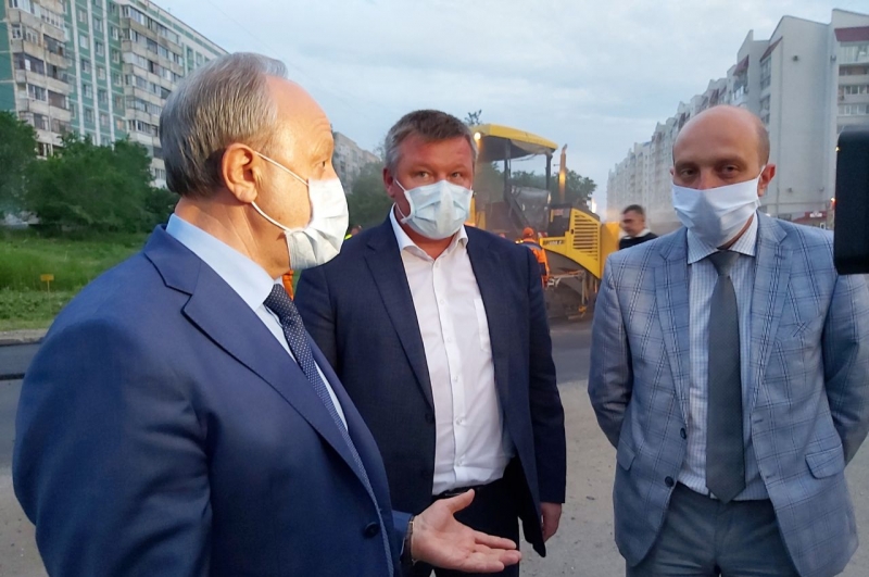 Глава региона осмотрел ремонтные работы на ул. Провиантской, которые ведутся от ул. Советской до Набережной, как на дороге, так и на тротуаре.