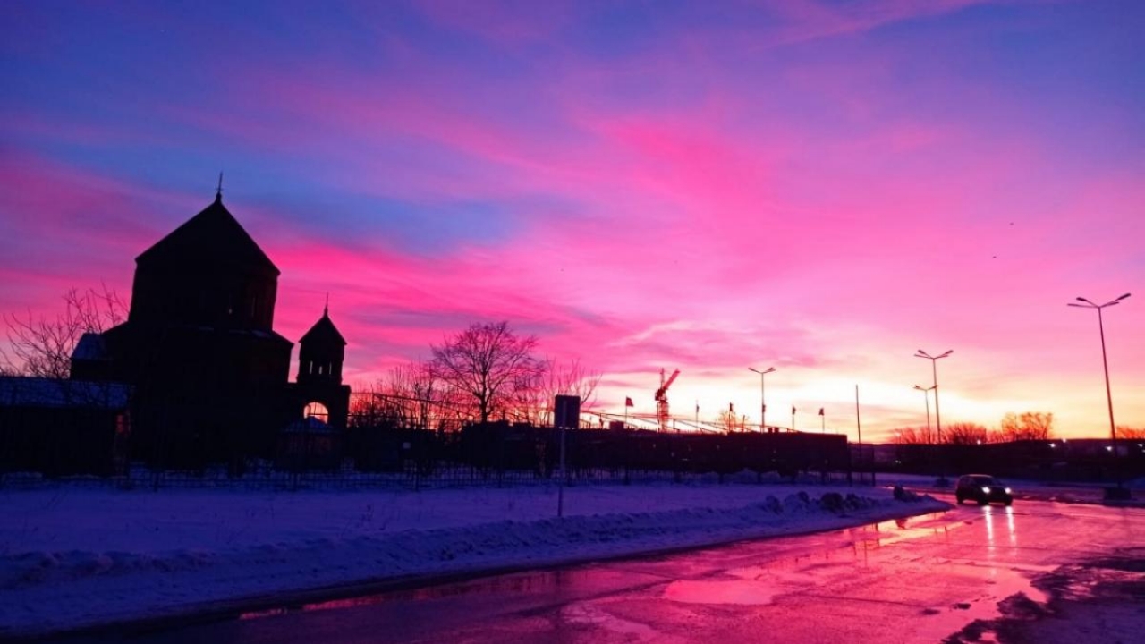 Вечером 3 ноября жители Саратова стали свидетелями двух редких атмосферных явлений. Сначала в небе появился розовый солнечный столб – вертикальная световая колонна над заходящим солнцем.