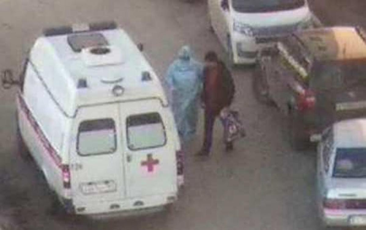 Фотографии, на которых изображено, как один человек, одетый в защитный костюм, подводит другого к машине скорой помощи, появились сегодня в Фейсбуке.