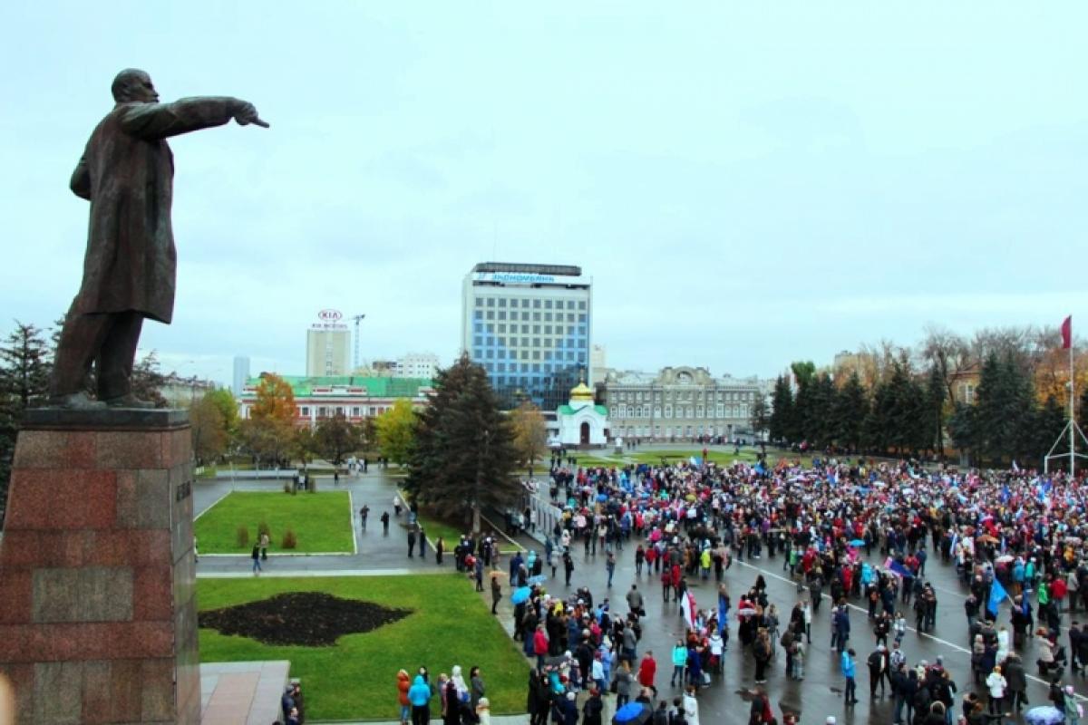 На Театральной площади Саратова начались ремонтные работы постамента памятника вождю мирового пролетариата.