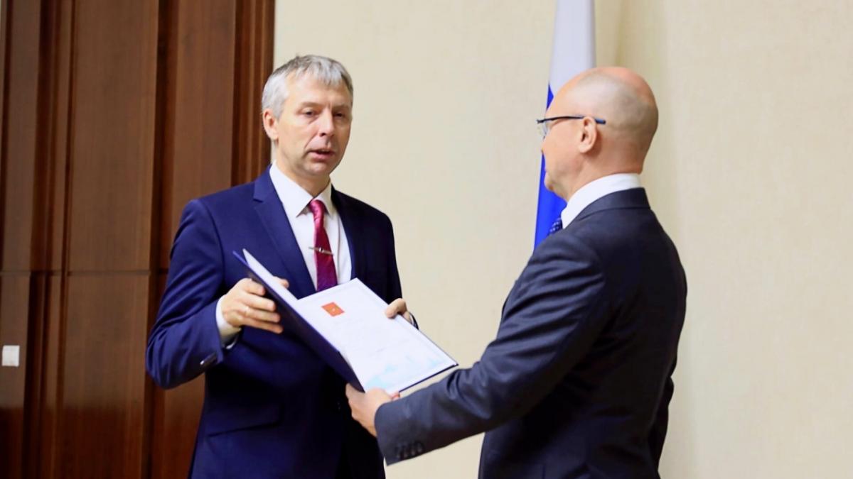 Первый заместитель руководителя администрации президента РФ Сергей Кириенко вручил благодарственное письмо Владимира Путина профессору Театрального института Саратовской консерватории Кириллу Захарову.