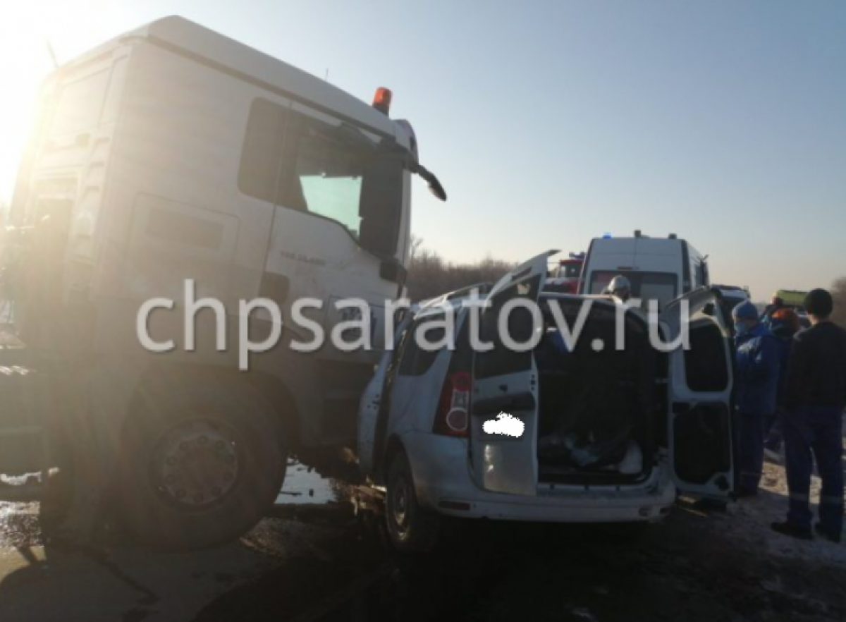О происшествии сообщает портал «ЧП Саратов». Столкновение автомобиля марки «Lada Largus» и фуры «Man» случилось на трассе Энгельс-Ершов.