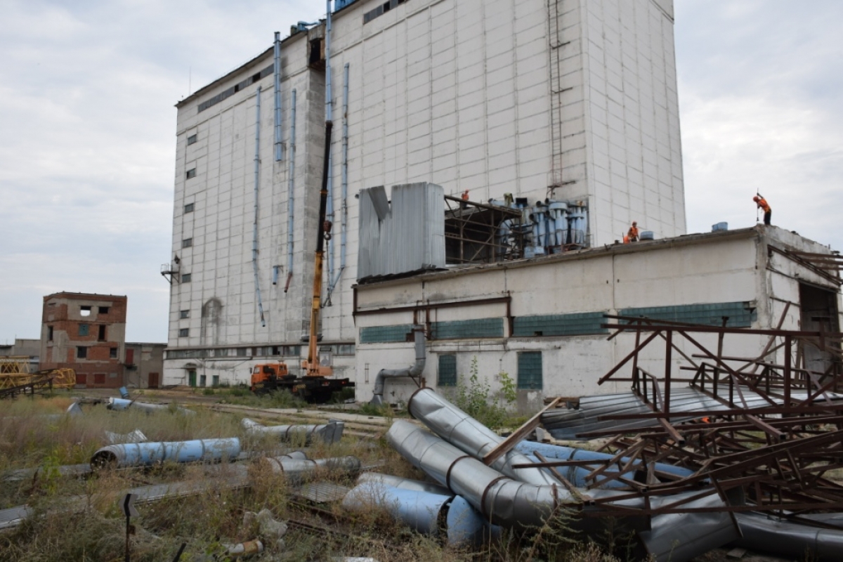 Также он сообщил, что к объекту подведены коммуникации: вода для промывки силосов перед разборкой элеватора и электропитание для работы башенного крана.