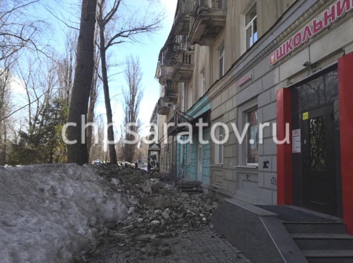 На улице 50 лет Октября, 71 в Ленинском районе Саратова произошло обрушение фасада здания с частью кровли. Об этом сообщает chpsaratov.ru.
