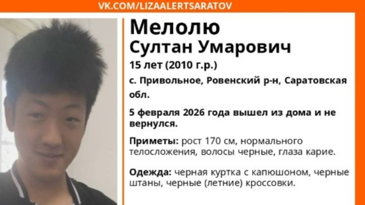 Султан Умарович Мелолю 2010 года рождения пропал 5 февраля 2026 года. В тот день он был одет в черную куртку с капюшоном, черные штаны, черные (летние) кроссовки. Рост исчезнувшего сартовца - 170 см, телосложение – нормальное, волосы черные, глаза карего цвета.